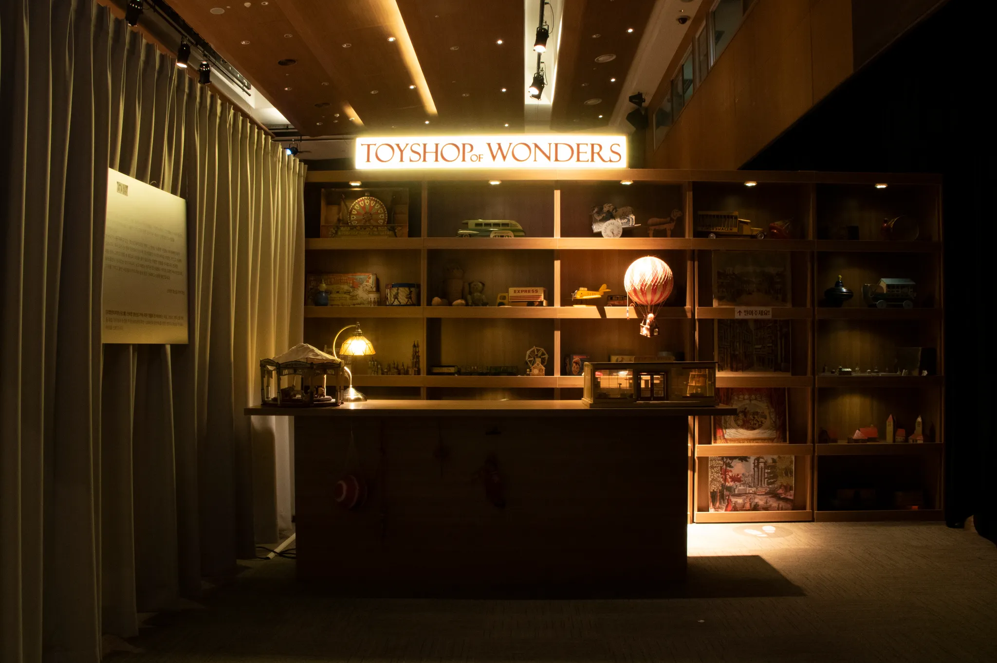서울웨이브아트센터에서와는 다른 새로운 경험들을 할 수 있으면서도, <신비한 장난감 가게>의 시그니처 공간과 프로그램도 만나실 수 있었습니다. 신비한 장난감 가게의 모습과 뒷편의 숨겨진 공간들로 향하는 비밀의 문, 수집가의 정신 세계를 경험할 수 있는 마지막 콜렉터의 방, 전시와 놀 수 있는 대표 프로그램인 ‘토이력 테스트’와 ‘장난감 엽서 컬러링’입니다.