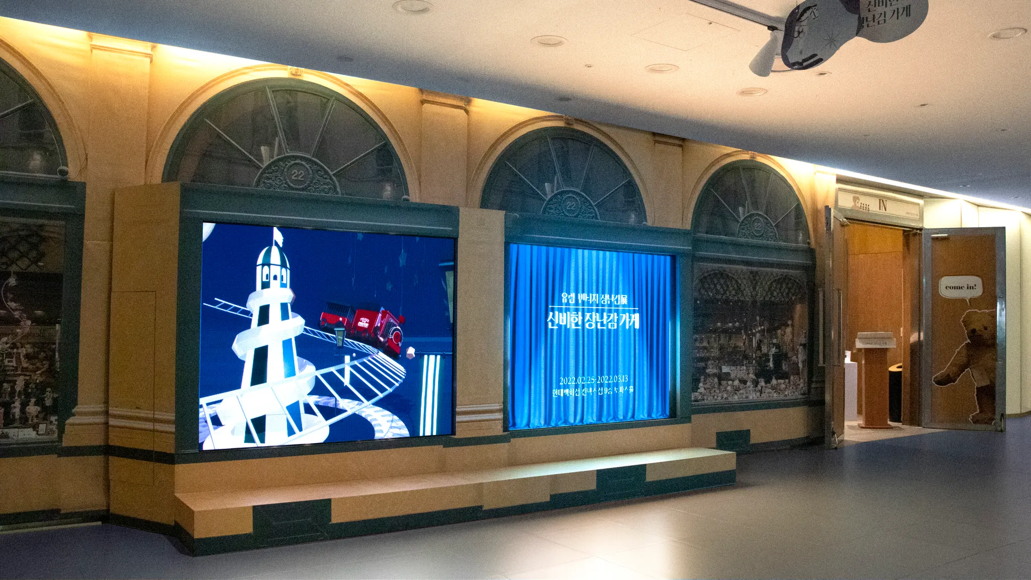 장난감이 우리 삶에 주는 의미에 따라 구성한 기존의 6개실을 열려 있는 공간 안에서 마치 영화 세트장과 같은 오픈 플랜으로 계획했습니다. (회상, 역사, 판타지, 상상, 귀여움, 즐거움)