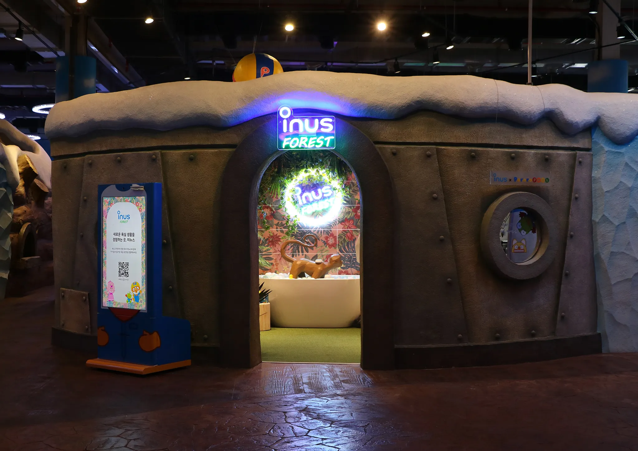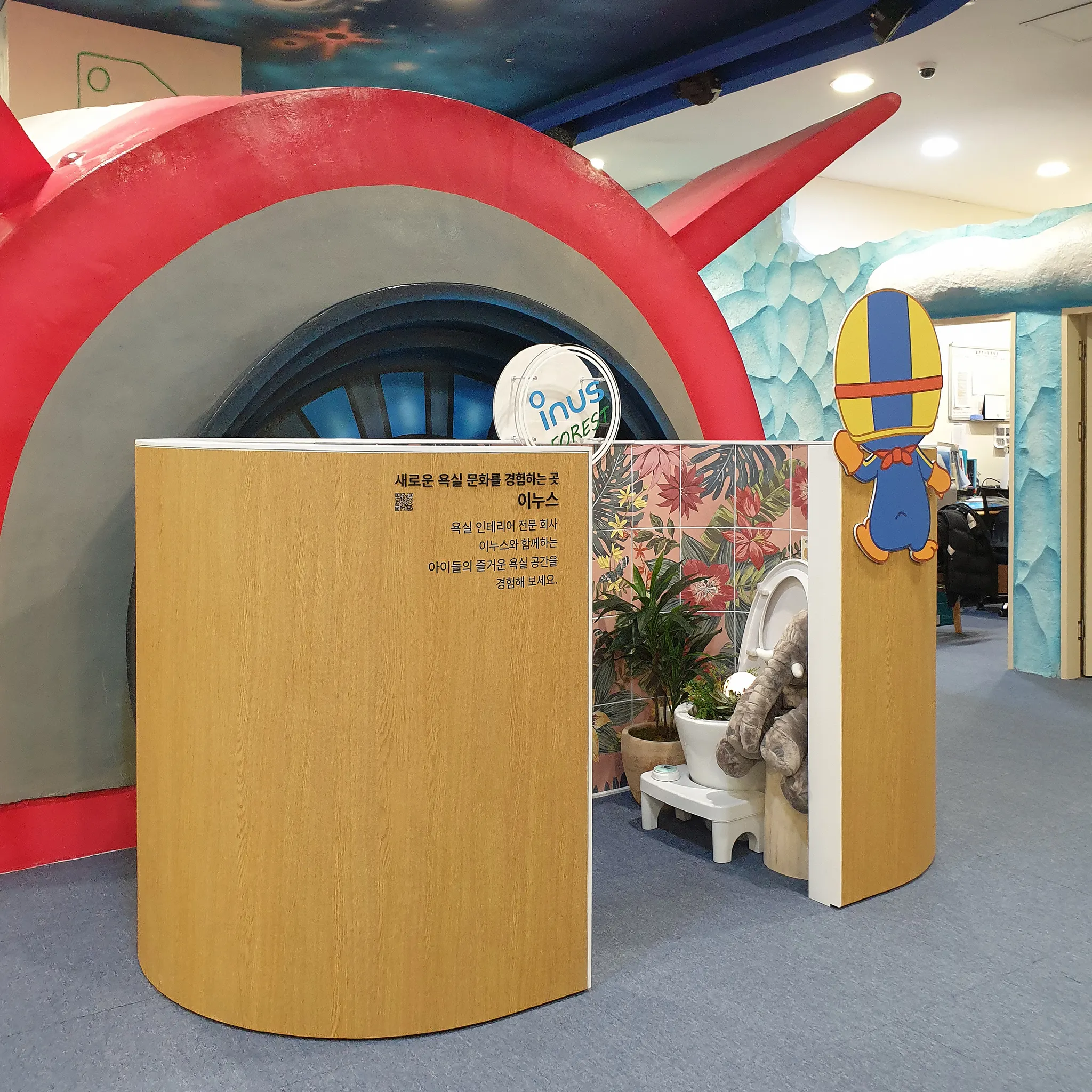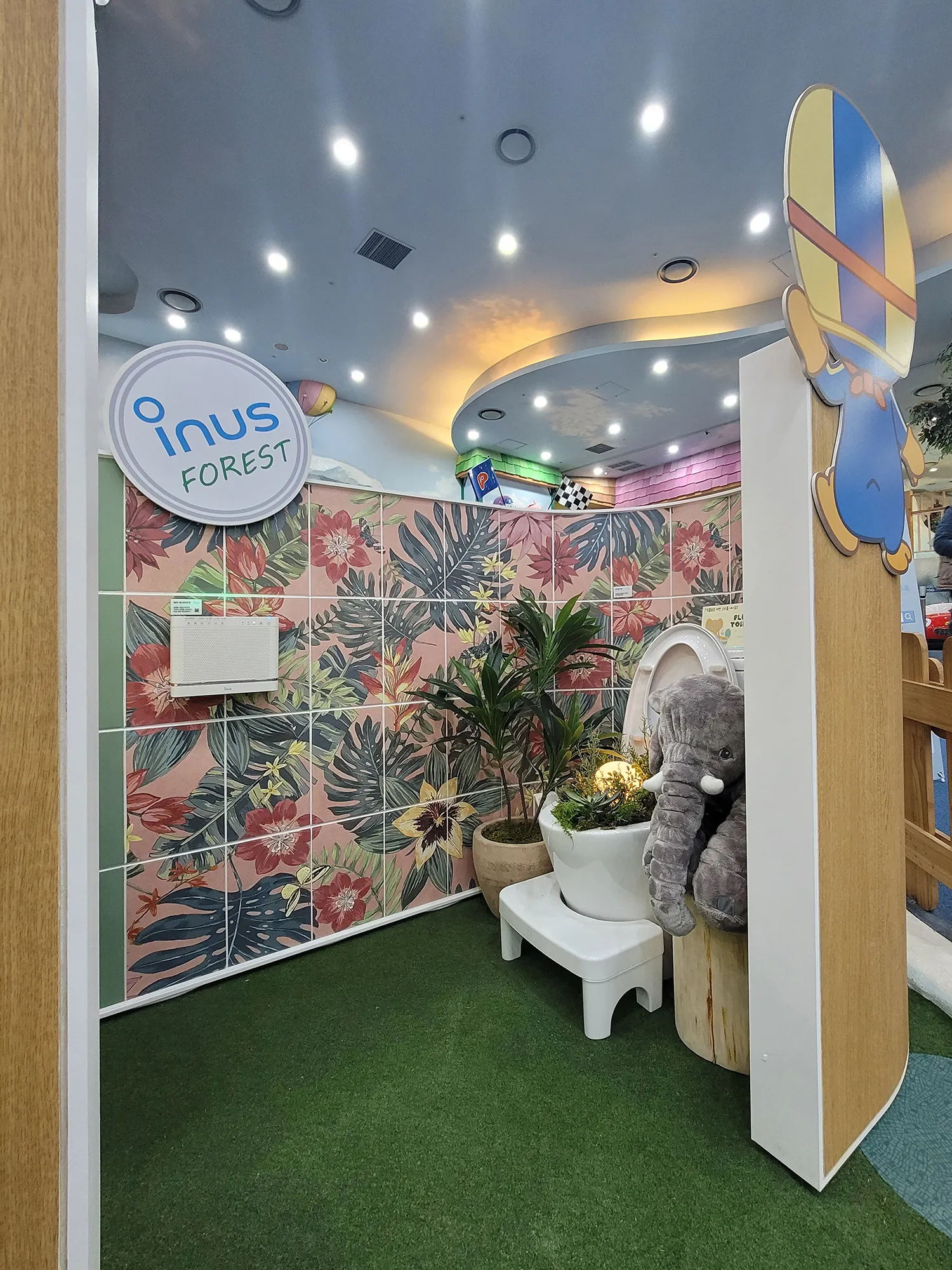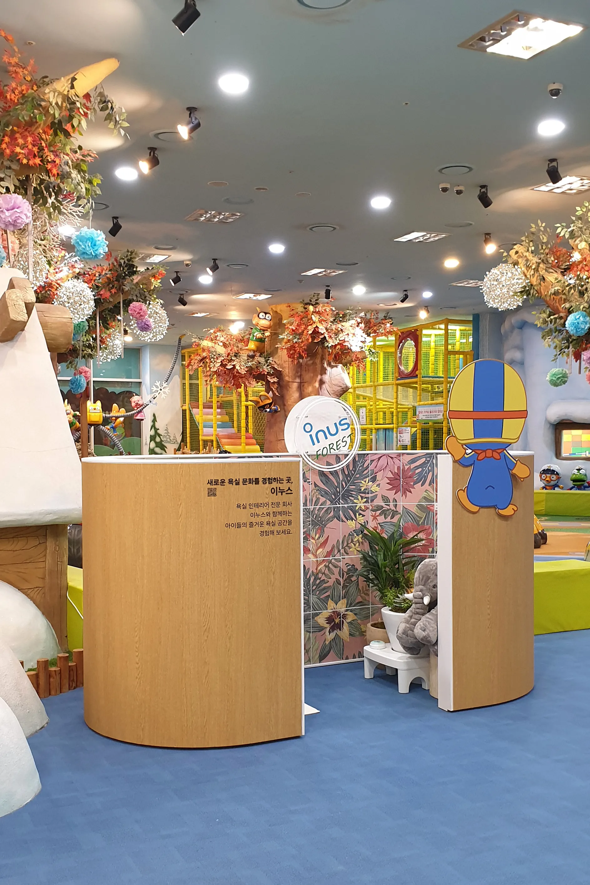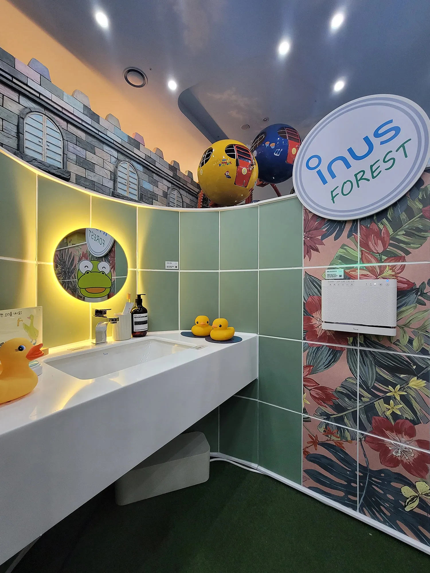 뽀로로파크 내의 ‘이누스 포레스트’는 유쾌한 화장실이자, 집에서는 어려운 놀이형 공간 경험을 제공하는 욕실 위생 교육 공간입니다. 더이누스의 ‘플로럴 아트월’ 제품과 ‘힐링 테라피’, 그리고 뽀로로의 세계관이 어우러진 이곳에서, 뽀로로 친구들과 함께 숲 속의 다양한 동물 친구들을 만나보세요. 거울 앞에 서면 내 얼굴이 뽀로로 친구들의 얼굴로 바뀌어요.