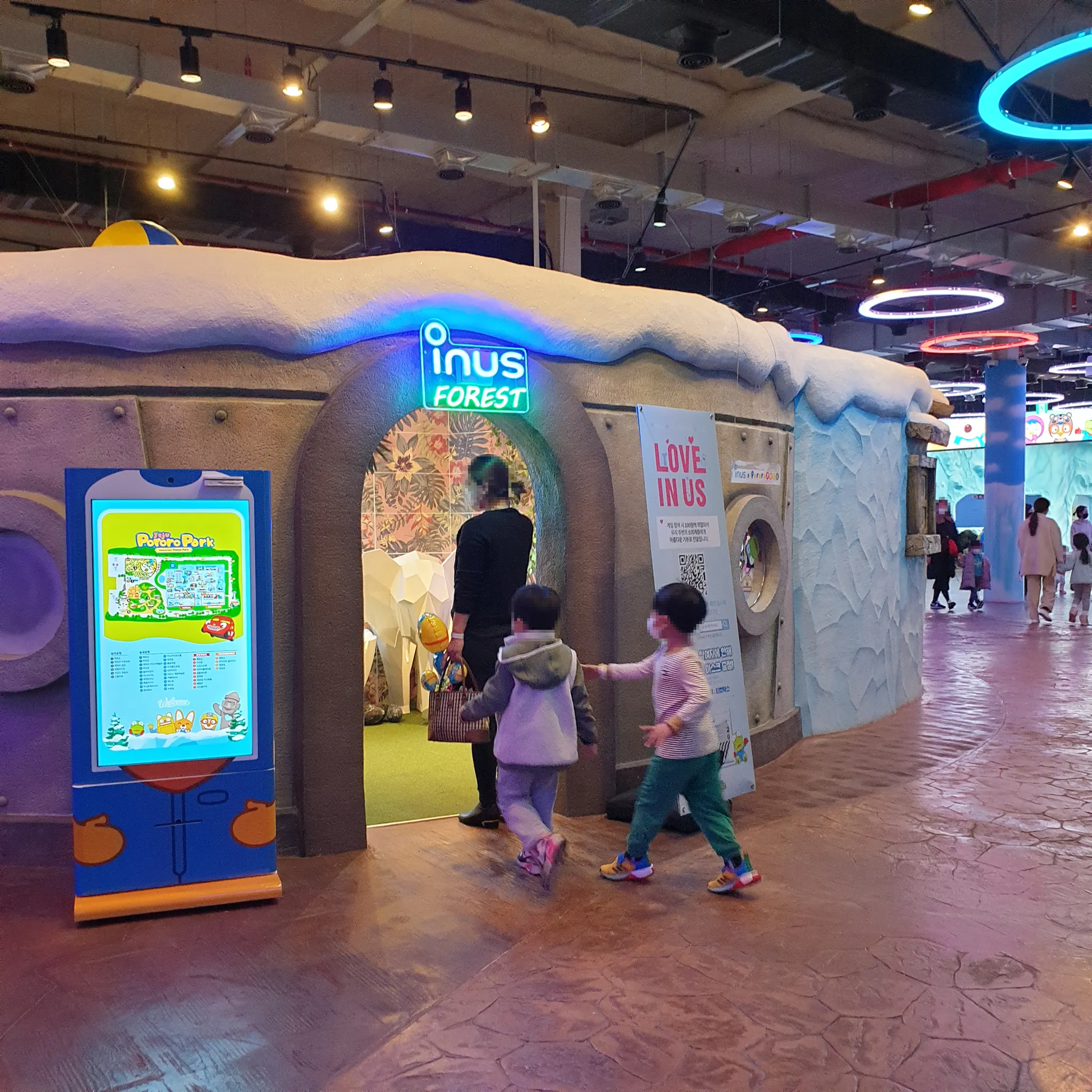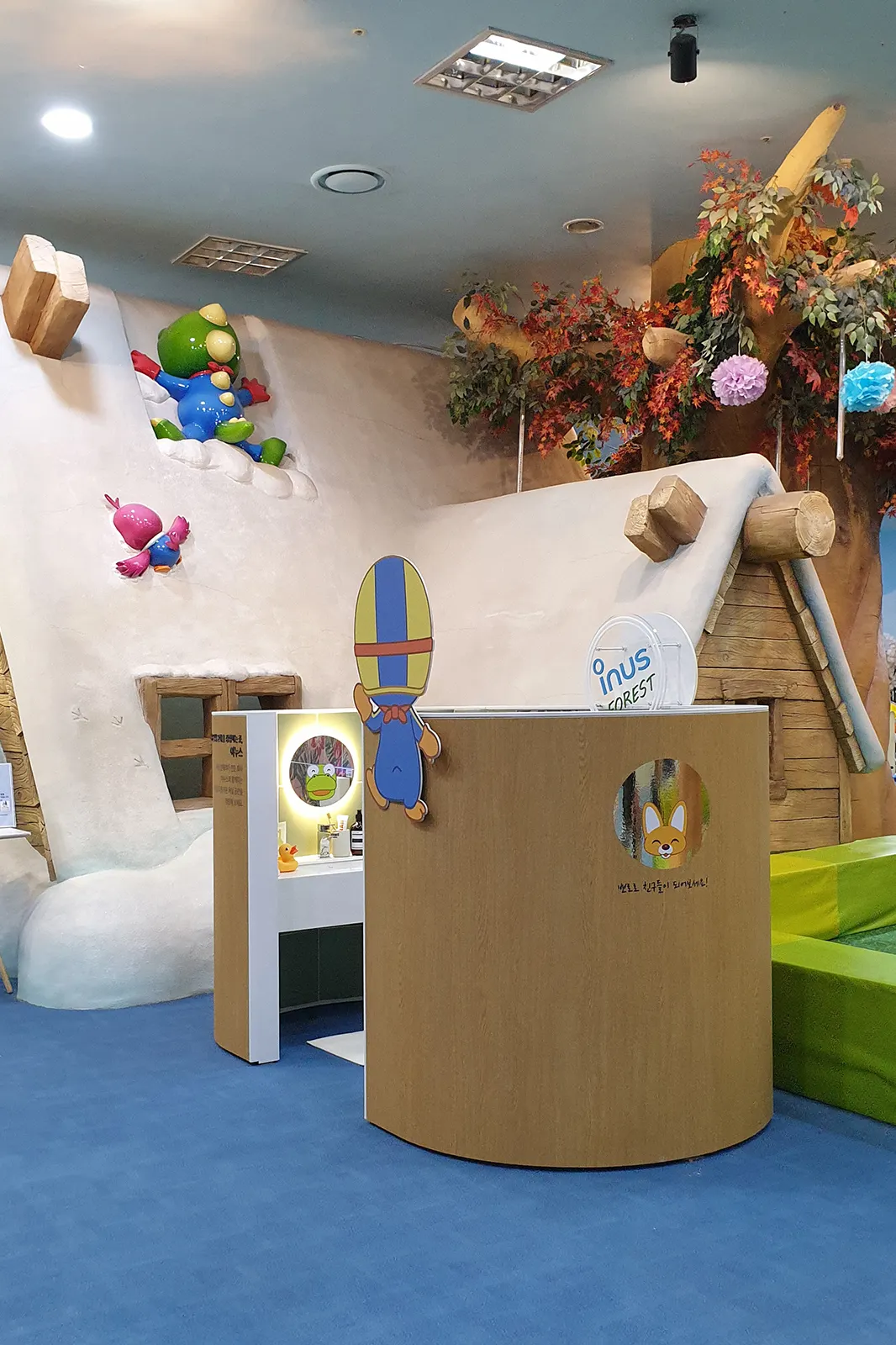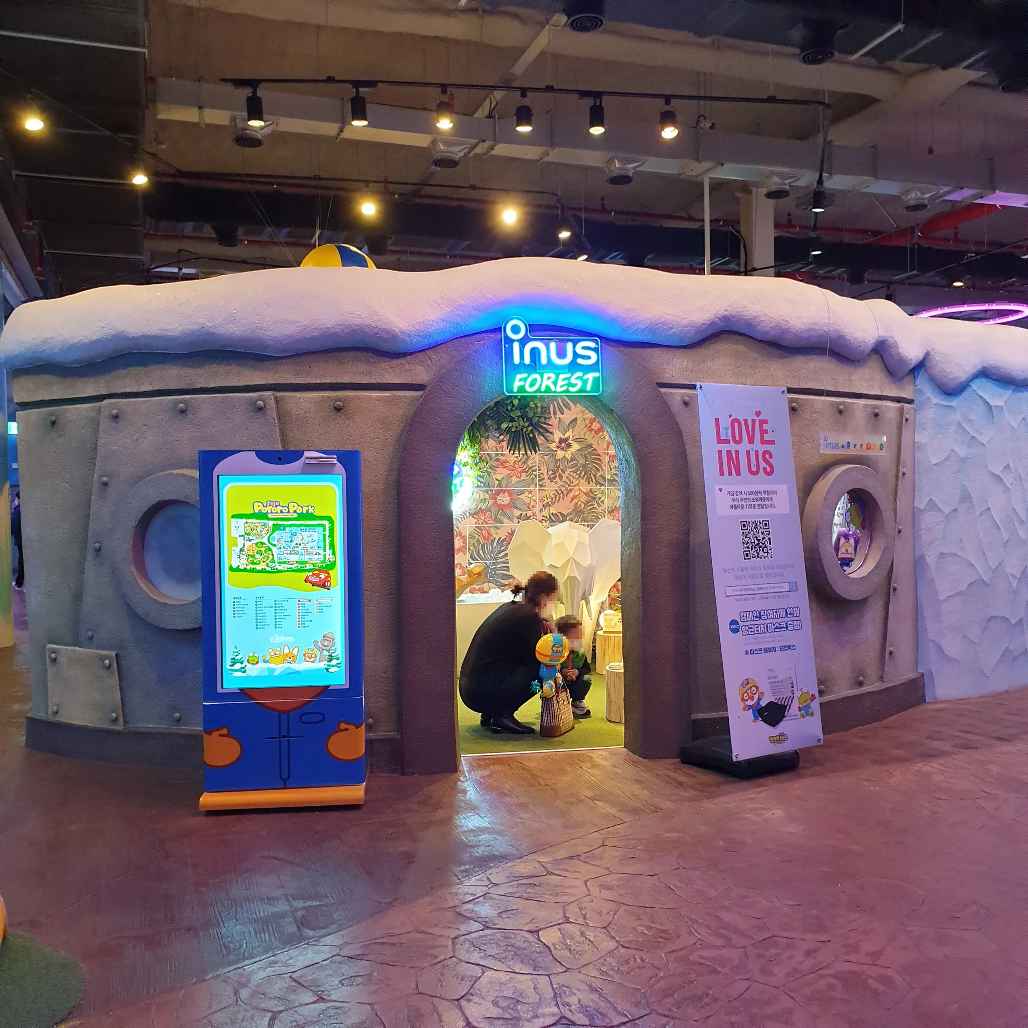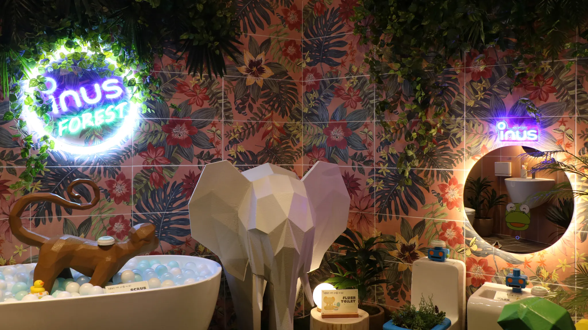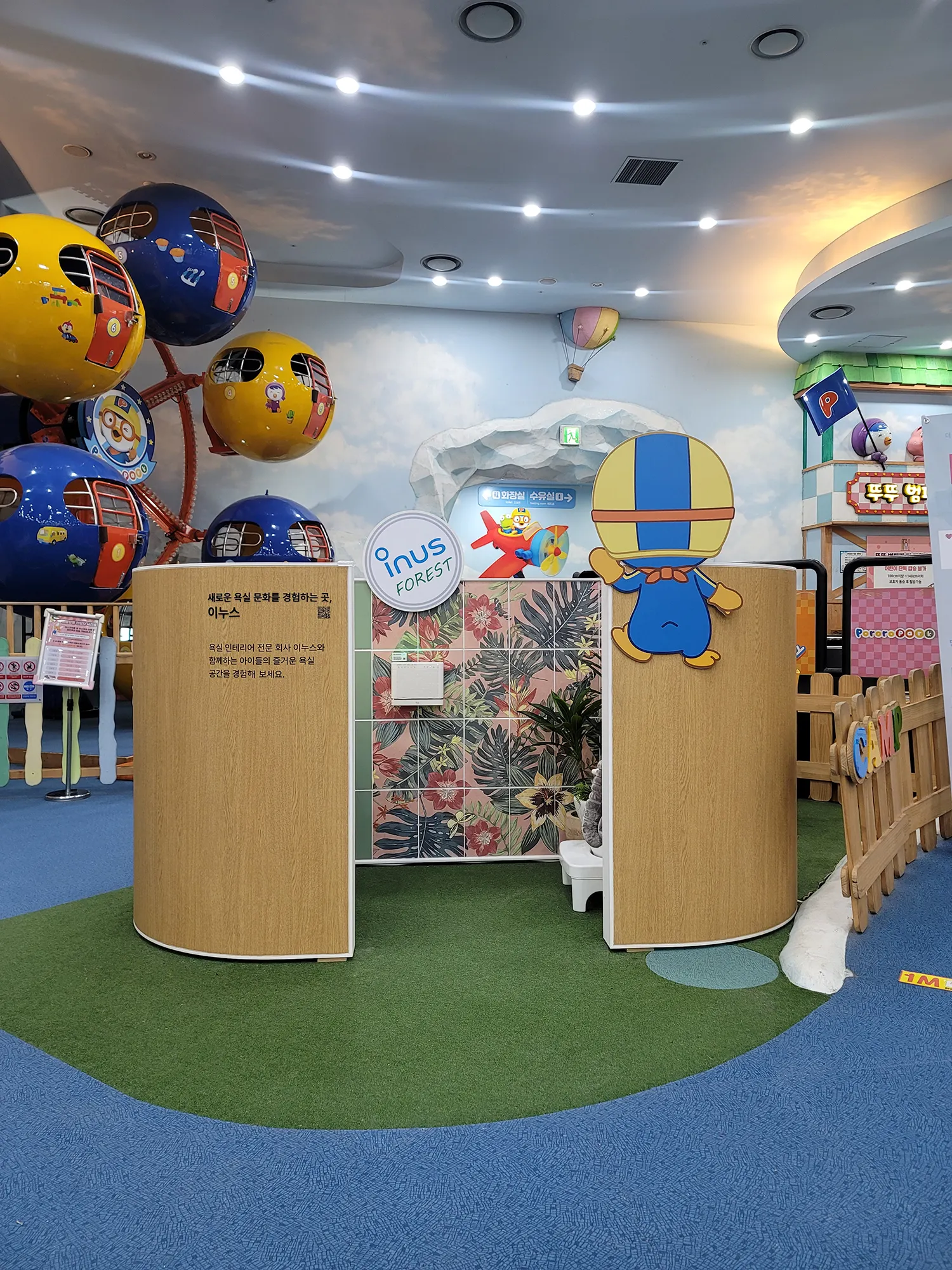 뽀로로파크 내의 ‘이누스 포레스트’는 유쾌한 화장실이자, 집에서는 어려운 놀이형 공간 경험을 제공하는 욕실 위생 교육 공간입니다. 더이누스의 ‘플로럴 아트월’ 제품과 ‘힐링 테라피’, 그리고 뽀로로의 세계관이 어우러진 이곳에서, 뽀로로 친구들과 함께 숲 속의 다양한 동물 친구들을 만나보세요. 거울 앞에 서면 내 얼굴이 뽀로로 친구들의 얼굴로 바뀌어요.