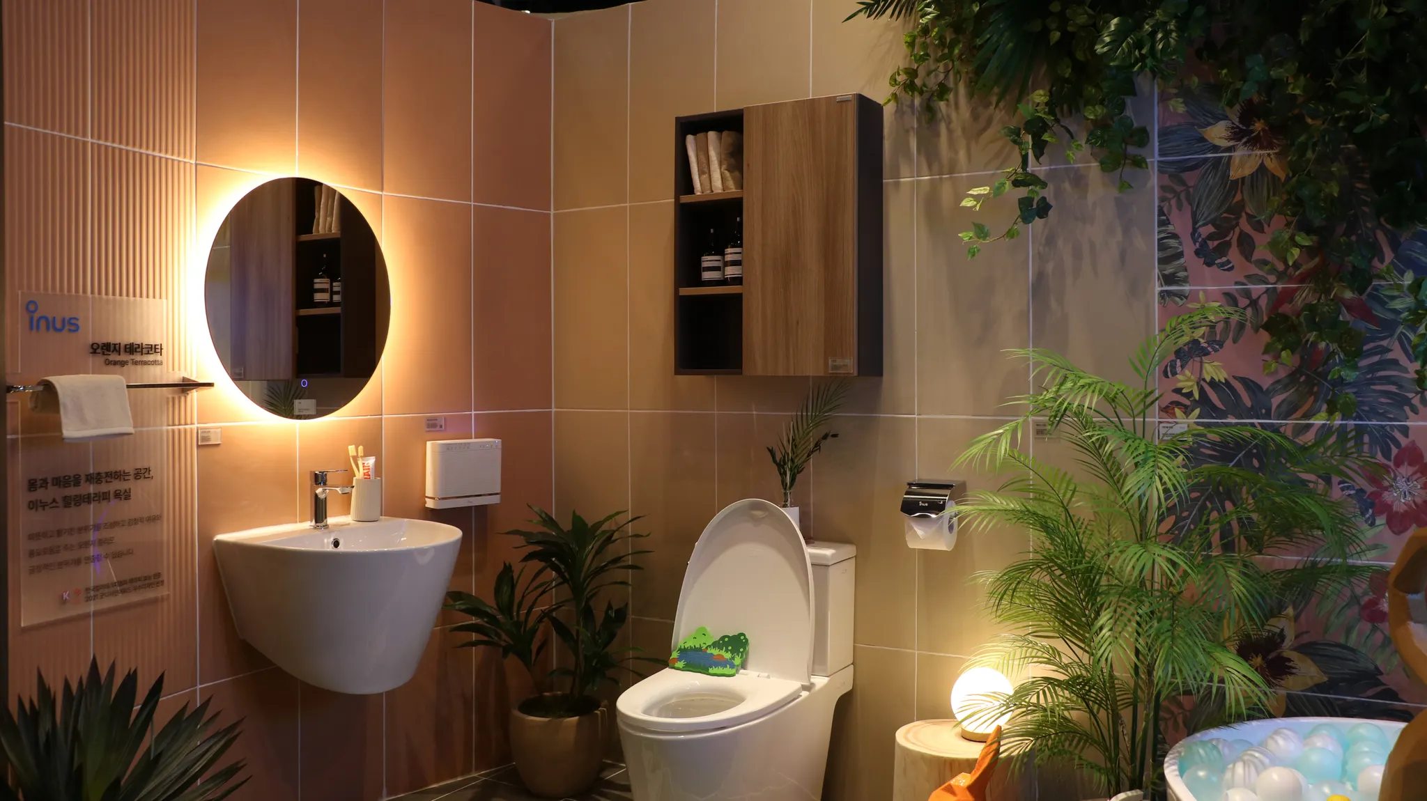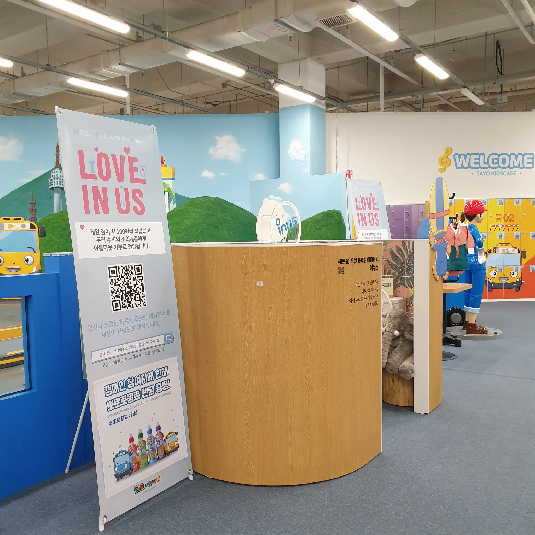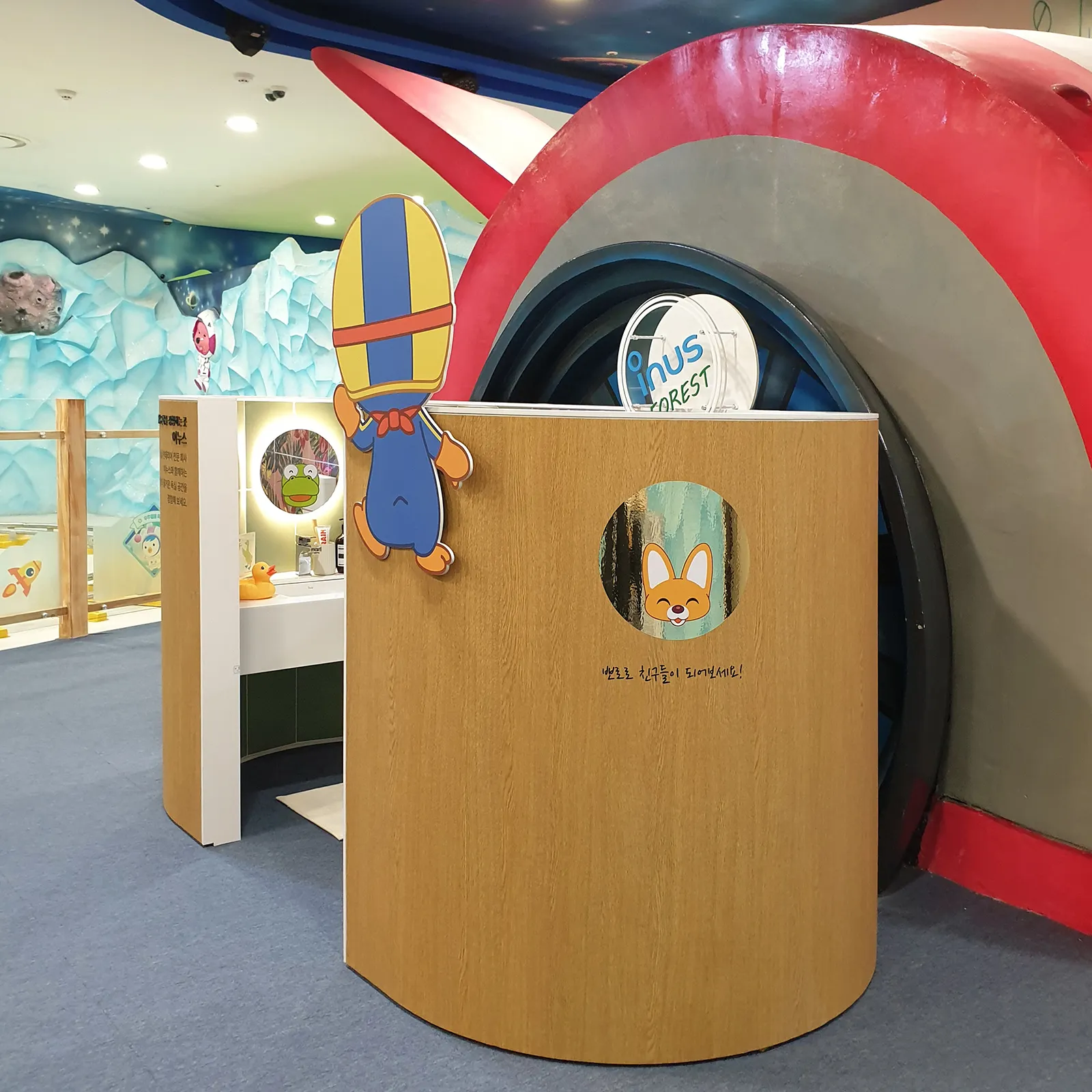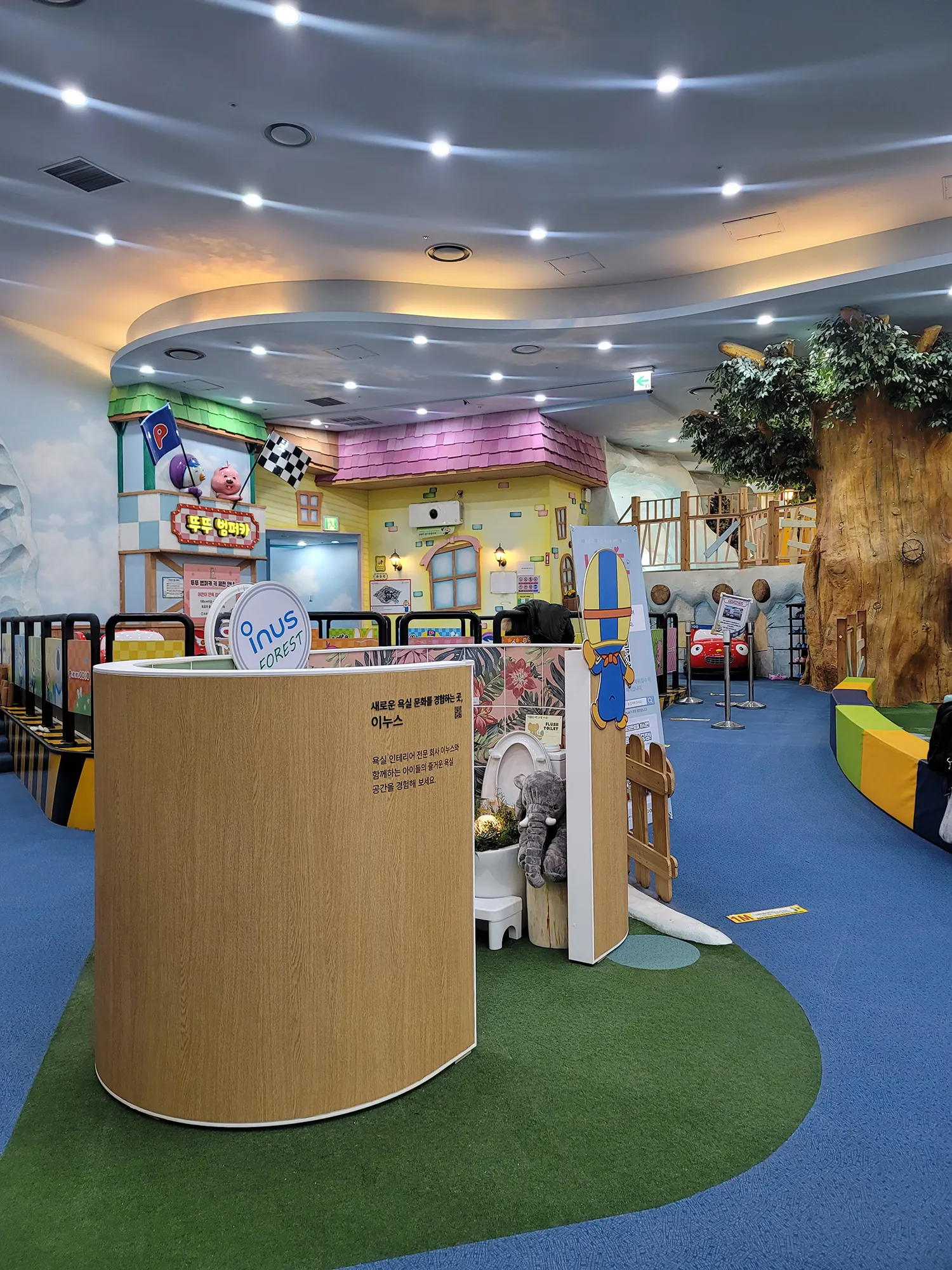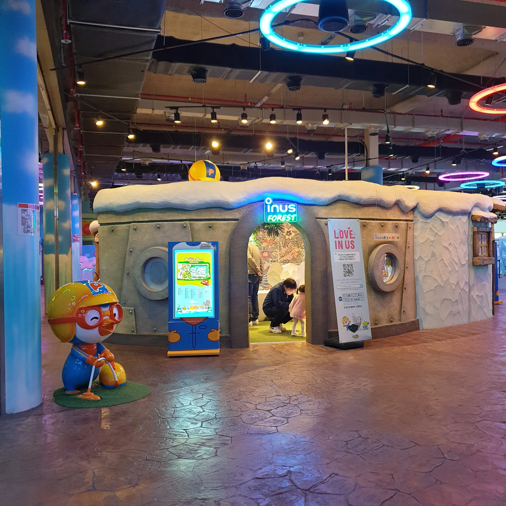뽀로로파크 내의 ‘이누스 포레스트’는 유쾌한 화장실이자, 집에서는 어려운 놀이형 공간 경험을 제공하는 욕실 위생 교육 공간입니다. 더이누스의 ‘플로럴 아트월’ 제품과 ‘힐링 테라피’, 그리고 뽀로로의 세계관이 어우러진 이곳에서, 뽀로로 친구들과 함께 숲 속의 다양한 동물 친구들을 만나보세요. 거울 앞에 서면 내 얼굴이 뽀로로 친구들의 얼굴로 바뀌어요.